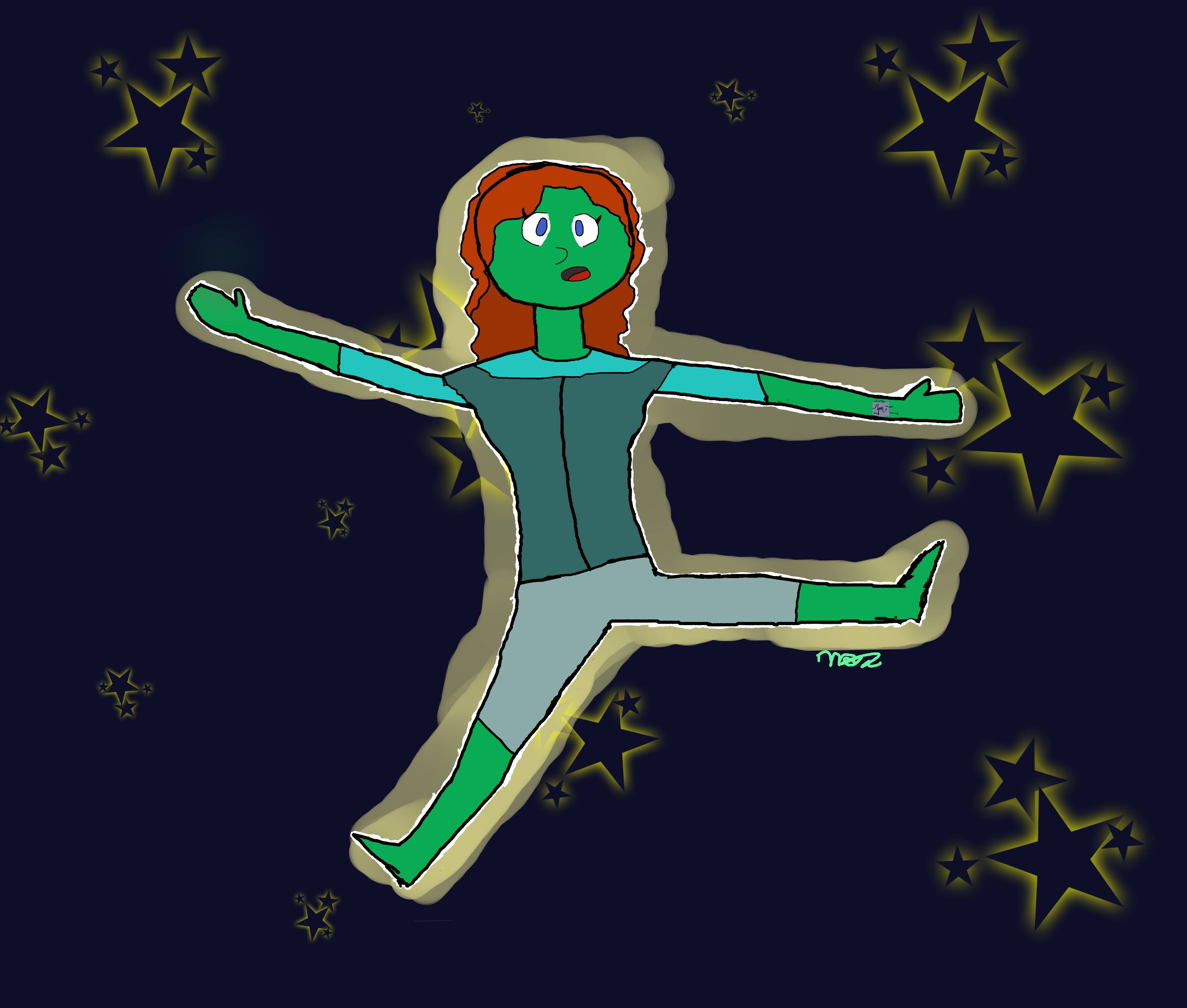This is an alien girl floating in space. don't know why... she just is... and yes she does have a chip on her wrist! maybe this will be an oc later on...
